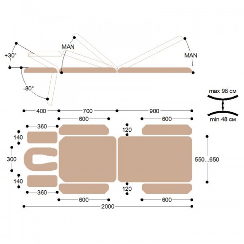 Регулировка высоты ложа, см.